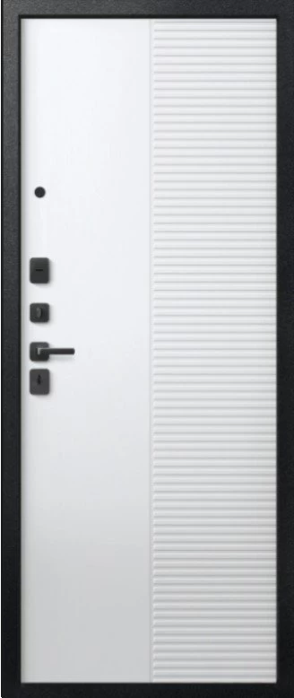 Надежная входная Дверь V-18 Черный муар + Кашемир графит - Кашемир Белый премиум класса по цене 47 553 руб. Большая толщина стали защитит от проникновения в ваш дом, квартиру или коттедж. Используется очень качественная фурнитура: замки, цилиндры, ручки, защелки. Покрытие и отделка двери изготовлено под внимательным контролем производителя. Дверь имеет долгий срок службы и гарантию.